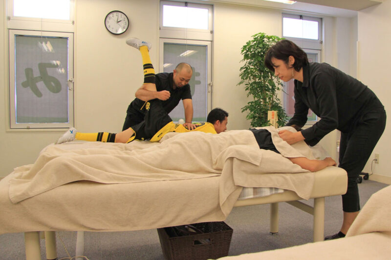 試合と同じ90分間の全身もみほぐしコースをハーフタイムなしでお願いしました!