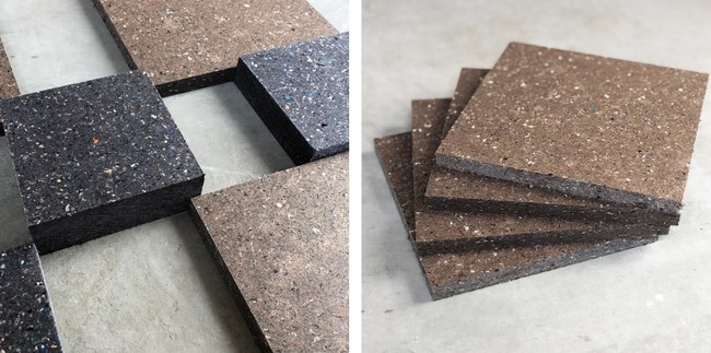 布だけではなく皮革など廃棄衣料品に含まれるさまざまな繊維を原料にすることができるサスティナブルな循環型繊維リサイクルボードで、硬度があり加工しやすく多様な目的に使用することができます。